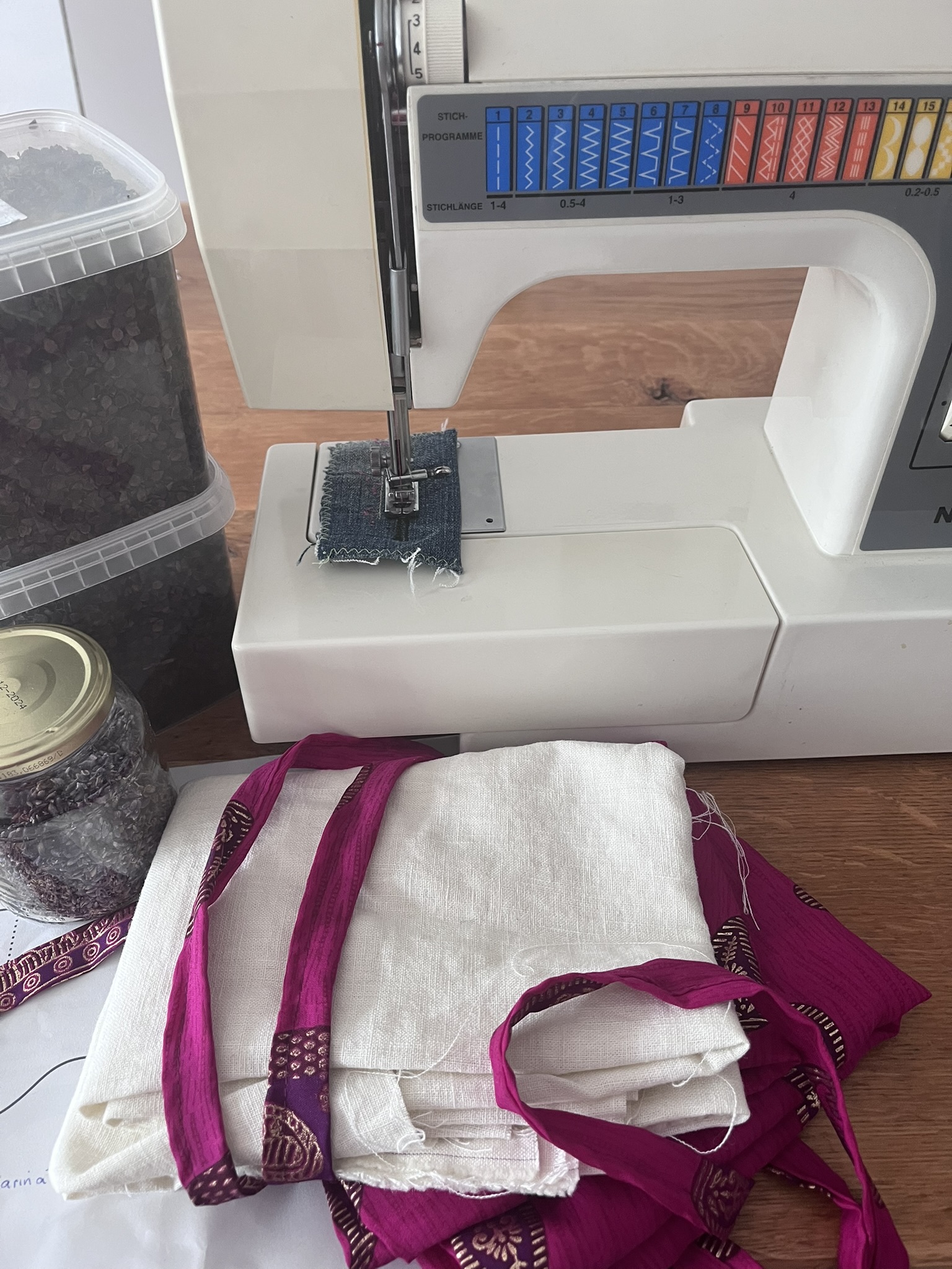Nach einem Crashkurs im Nähen, inklusive Leihgabe der Maschine aus dem Kreis der Familie, begann die Umsetzung.